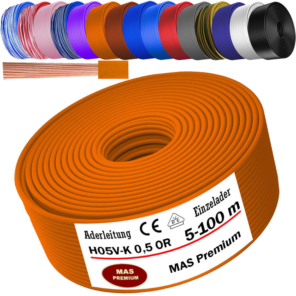H05 V-K 0,5 mm² Aderleitung HBL OR RS RT oder RT-WS 5 bis 100 m