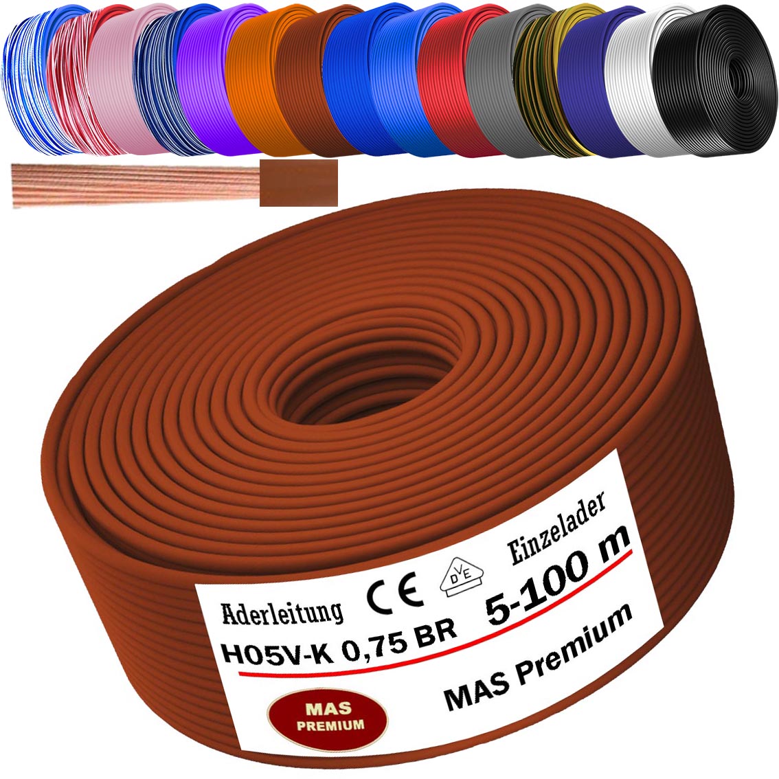 Von 5 bis 100m Aderleitung H05V-K 0,75 Feindrähtig Einzelader Flexibel
