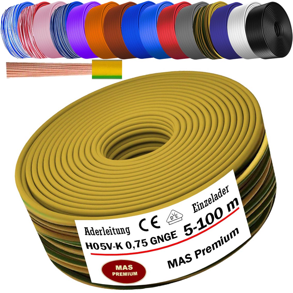 H05 V-K 0,75 mm² Aderleitung BR DBL DBL-WS GNGE GR oder HBL 5 bis 100 m